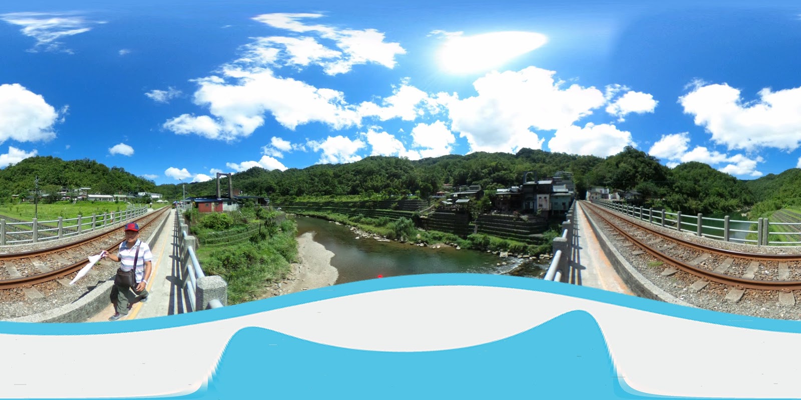 (2)上傳到全景照片平台(Roundme):以三貂嶺這個案例為例,將拍照的照片上傳,並標註各個位置的資訊,並將各個地點進行分門別類。在這裡要注意的是,目前VR平台有很多,要注意每個VR平台在使用VR眼鏡模式時的限制,如Roundme的標示資訊,只輸入標題才能夠顯示標示資訊內容,若是輸入了內容資訊,則無法顯示標示內容。如下面圖示。